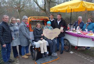 Für den Unterhalt der E-Rikscha erhält die Stadt Lampertheim am 5.12.2025 im Rahmen des “Belebten Friedhofs” 1000 € aus den Zinserlösen der Diakonie Stiftung.